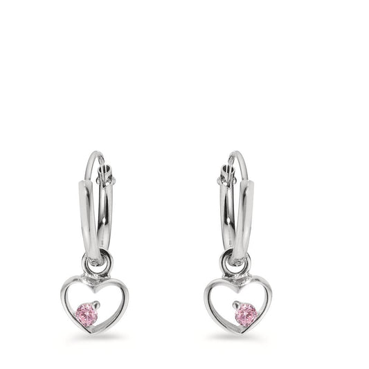 Créoles avec pendentif Argent Zircone rose Rhodié Coeur Ø8 mm