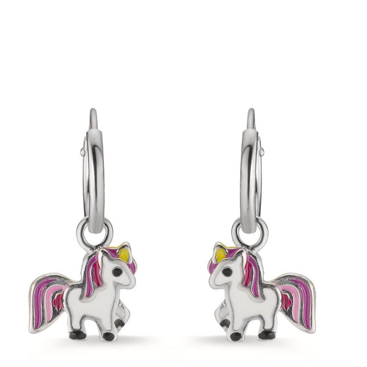 Créoles avec pendentif Argent Rhodié Licorne Ø8 mm