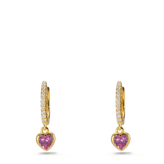 Créoles à charnières Argent Zircone jaune Plaqué or Coeur