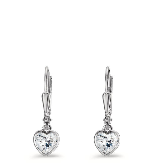 Pendant d'oreilles Argent Zircone Rhodié Coeur Ø6 mm