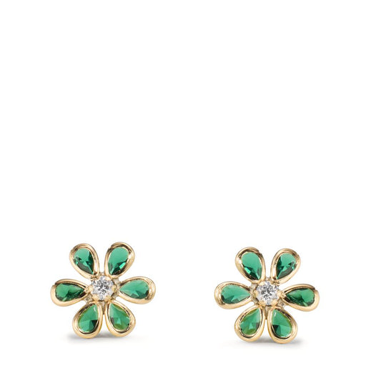 Clous d'oreilles Or jaune 9K [synth. Smaragd] 6 Pierres, Zircone Fleur Ø7.5 mm