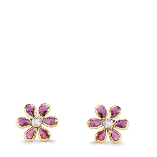 Clous d'oreilles Or jaune 9K [synth. Rubin] 6 Pierres, Zircone Fleur Ø7.5 mm