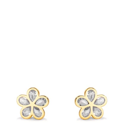 Clous d'oreilles Or jaune 9K Zircone blanc, 10 Pierres Fleur Ø7.3 mm