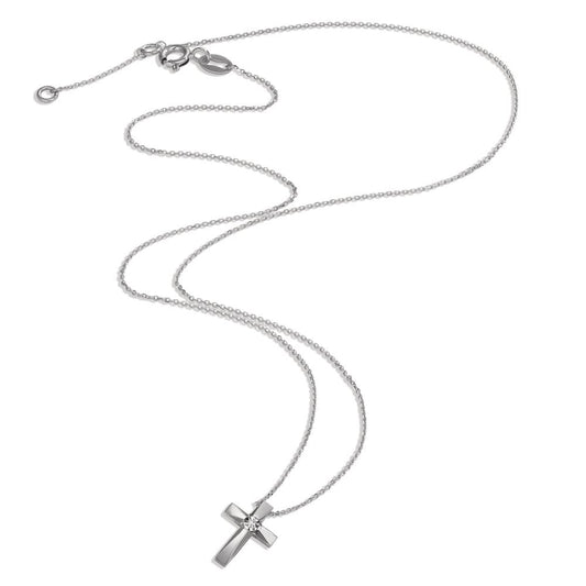 Collier Or blanc 18K Diamant 0.005 ct, w-si Croix 40-42 cm