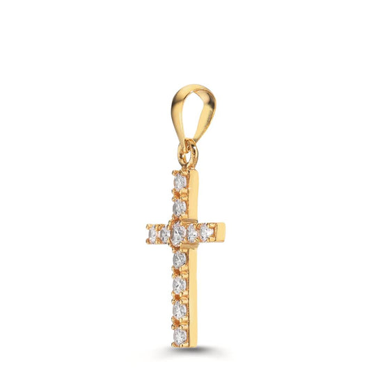 Pendentif Or jaune 18K Zircone 21 Pierres Croix