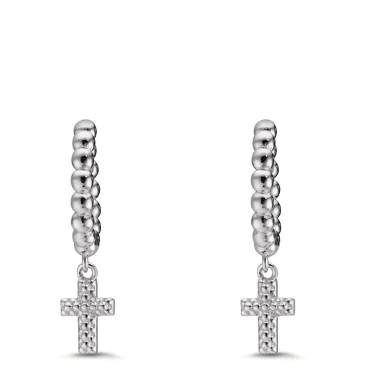 Créoles à charnières Argent Rhodié Croix