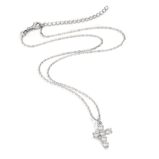 Collier Argent Zircone Rhodié Croix 40-45 cm