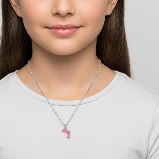 Chaînette avec pendentif Argent Laqué Dauphin 36 cm