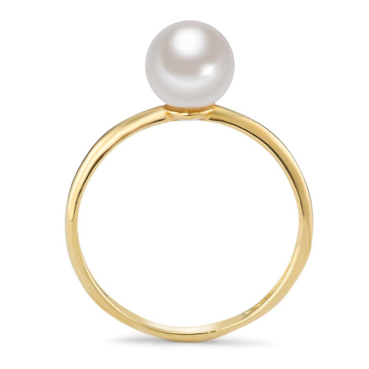 Bague Or jaune 18K perle d'eau douce blanc, 6 mm