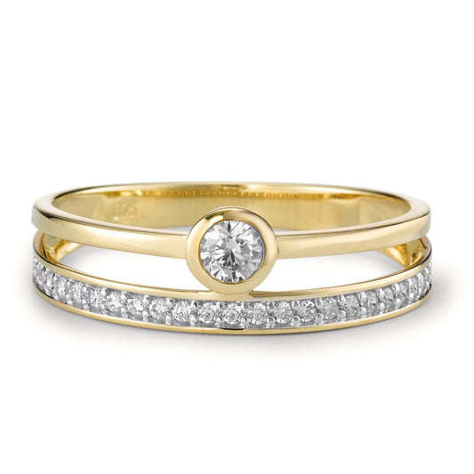 Bague Or jaune 9K Diamant blanc, 0.025 ct, 3 Pierres, brillant, p1