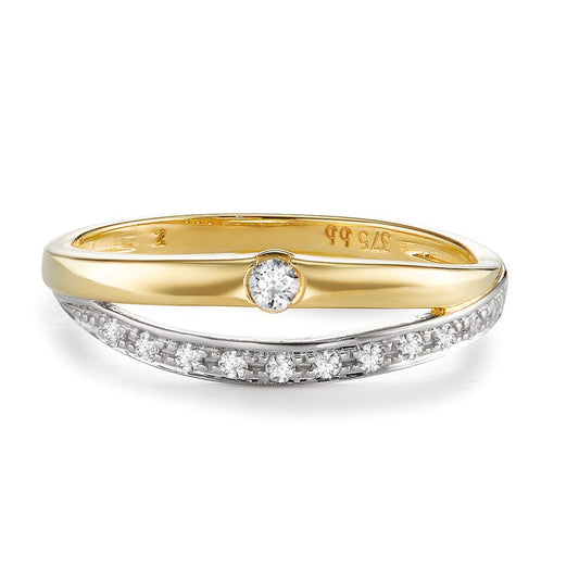 Bague Or jaune 9K Zircone 13 Pierres Bicolore