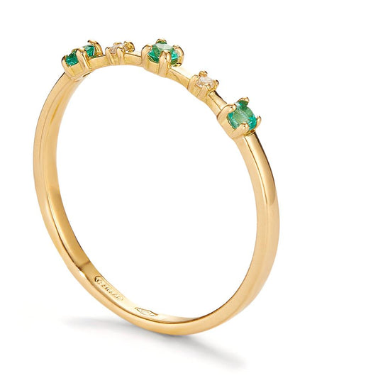 Bague Or jaune 18K Émeraude 0.10 ct, 3 Pierres, Diamant 0.016 ct, 2 Pierres, w-si