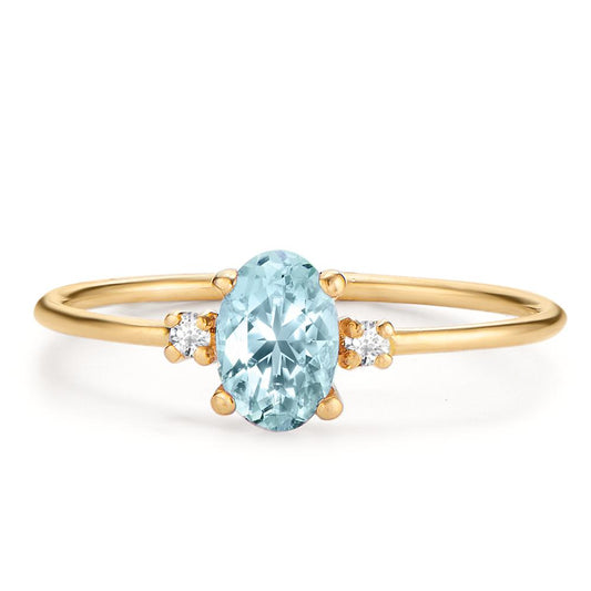 Bague Or jaune 18K Diamant 0.03 ct, 3 Pierres, w-si, Topaze bleu