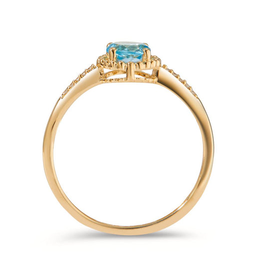 Bague Or jaune 14K Topaze bleu, Diamant 0.03 ct, 10 Pierres, w-si