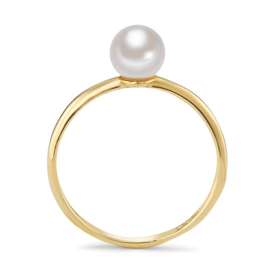Bague Or jaune 18K perle d'eau douce blanc, 5 mm
