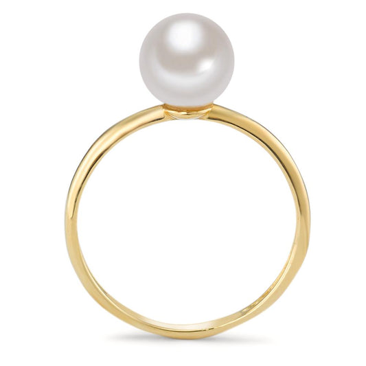 Bague Or jaune 18K perle d'eau douce blanc, 7 mm