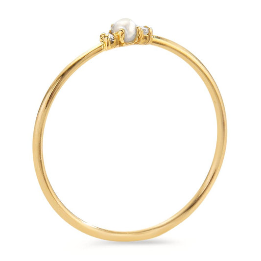 Bague Or jaune 18K Diamant 0.02 ct, 2 Pierres, w-si perle d'eau douce blanc, 2 mm