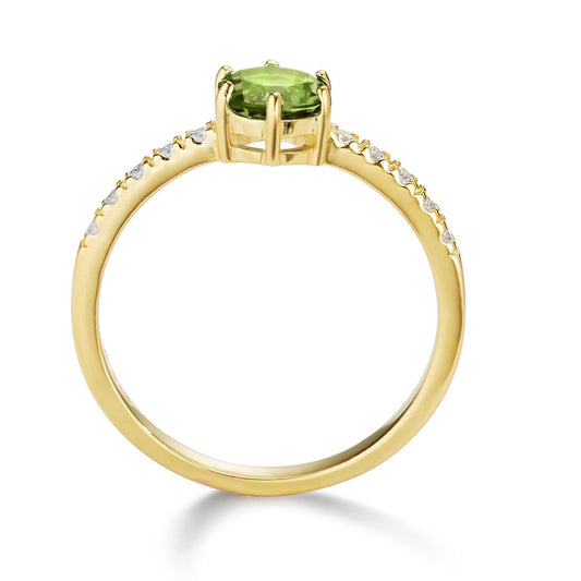 Bague Or jaune 9K Péridot, Zircone 10 Pierres