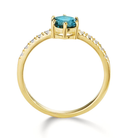 Bague Or jaune 9K Topaze London Blue, Zircone 10 Pierres