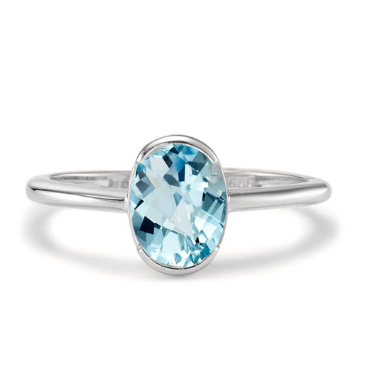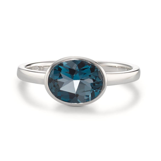 Bague Or blanc 9K Topaze bleu