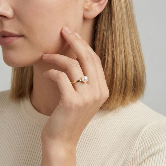 Bague Or blanc 18K perle d'eau douce blanc, 8 mm