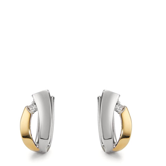 Créoles à charnières Argent Zircone 2 Pierres jaune Bicolore