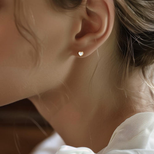 Clous d'oreilles Or jaune 14K nacre Coeur Ø4.5 mm