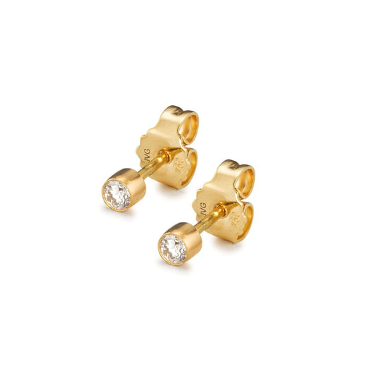 Clous d'oreilles Or jaune 18K Diamant 0.10 ct, 2 Pierres, w-si Ø3.5 mm