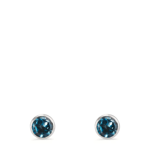 Clous d'oreilles Or blanc 18K Topaze London Blue 2 Pierres Ø6.5 mm