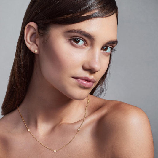 Clous d'oreilles Or jaune 14K Zircone 14 Pierres Ø4 mm