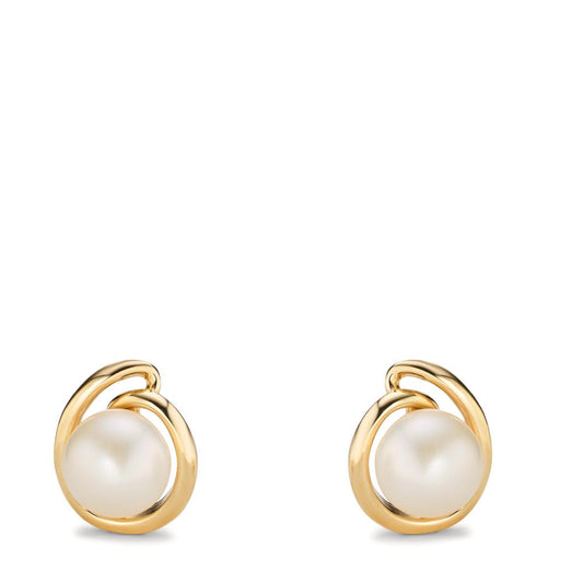 Pendant d'oreilles Argent jaune Plaqué or perle d'eau douce, 2 Perles, 9 mm
