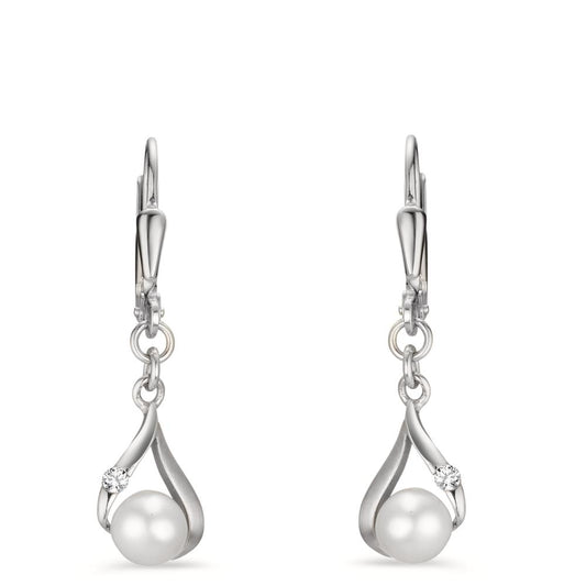 Pendant d'oreilles Or blanc 9K Zircone 2 Pierres perle d'eau douce, 2 Perles, 5 mm