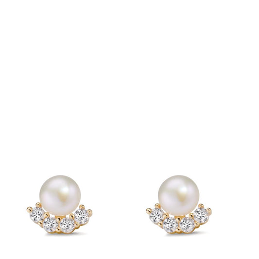 Pendant d'oreilles Or jaune 18K Diamant 0.06 ct, 2 Pierres, w-si perle d'eau douce blanc, 2 Perles, 4.5 mm