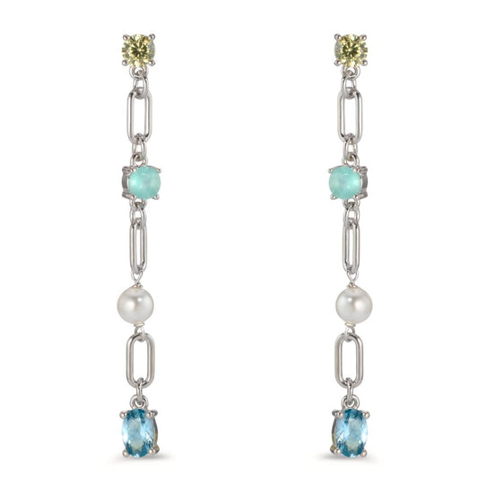Pendant d'oreilles Argent Zircone 6 Pierres Rhodié [shining Pearls], 2 Perles, 4 mm