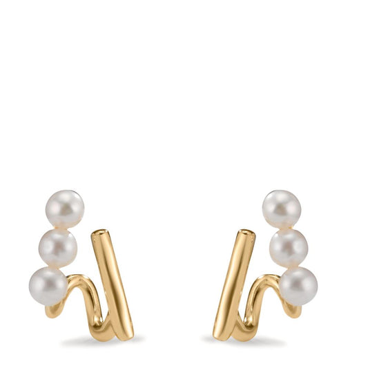 Pendant d'oreilles Or jaune 9K perle d'eau douce blanc, 2 Perles 7.5-8 mm