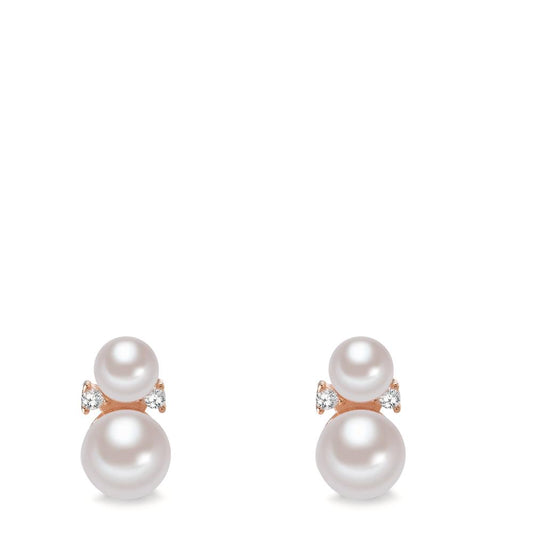 Clous d'oreilles Argent Zircone 2 Pierres rosé Plaqué or perle d'eau douce blanc, 2 Perles, 5.5 mm Ø9 mm