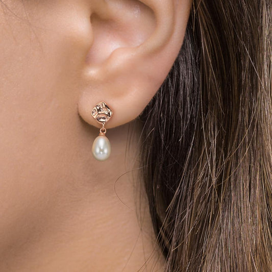 Pendant d'oreilles Argent rosé Plaqué or perle d'eau douce, 2 Perles 5.5-6 mm