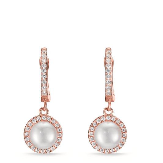 Créoles à charnières Argent Zircone rosé Plaqué or perle d'eau douce blanc, 2 Perles, 6 mm