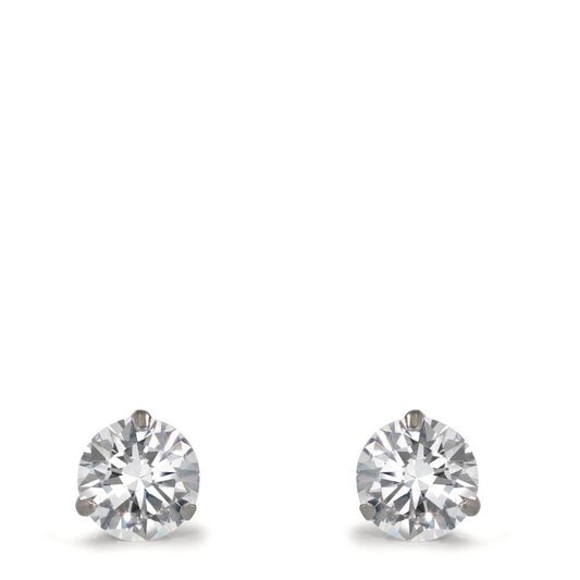 Pendant d'oreilles Argent Zircone blanc, 2 Pierres Argenté Ø7 mm