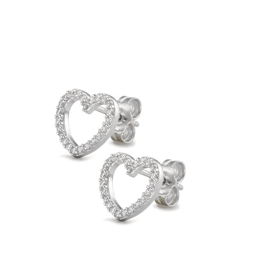Clous d'oreilles Or blanc 18K Zircone Coeur Ø11 mm