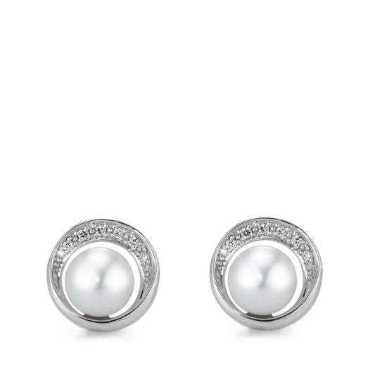 Clous d'oreilles Or blanc 18K Diamant 0.07 ct, 12 Pierres, brillant, w-si perle d'eau douce 8-8.5 mm