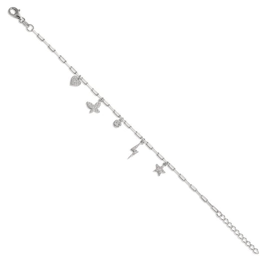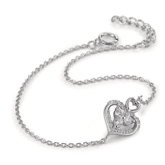 Bracelet Argent Zircone Rhodié Coeur 17-19 cm