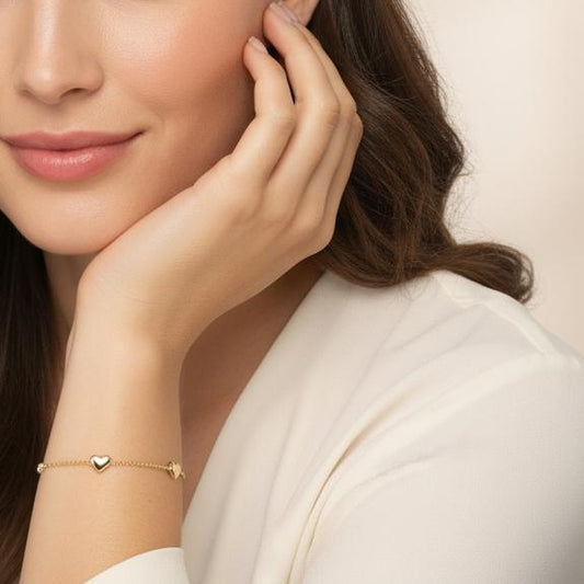 Bracelet Argent Zircone 2 Pierres jaune Plaqué or Coeur 16.5-18.5 cm