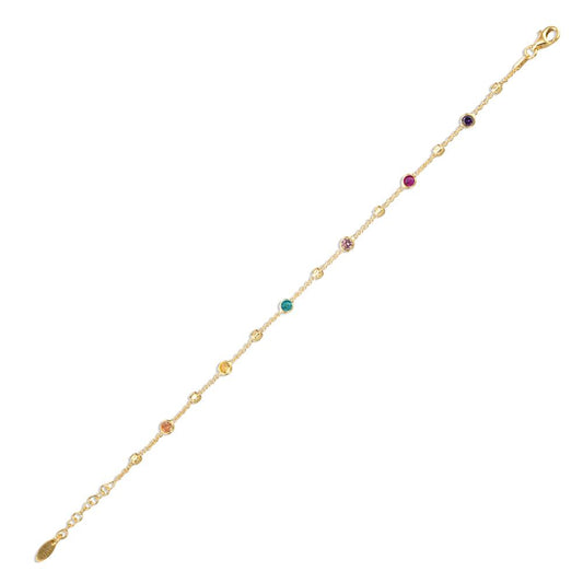 Bracelet Argent Zircone coloré, 6 Pierres jaune Plaqué or