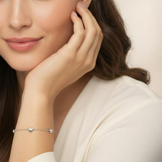 Bracelet Argent Zircone 2 Pierres Rhodié Coeur