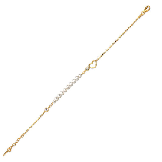 Bracelet Argent Zircone 2 Pierres jaune Plaqué or [shining Pearls], 10 Perles 3-4 mm Coeur