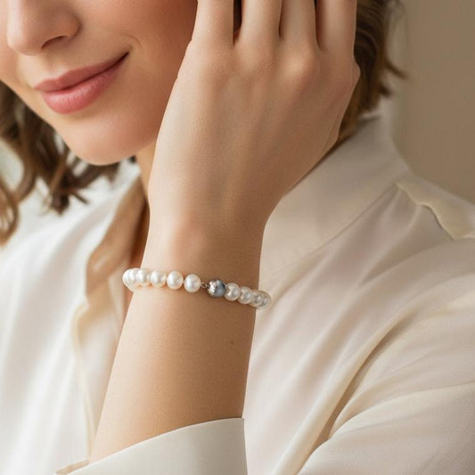 Bracelet Argent perle d'eau douce, 7 mm Ø8 mm