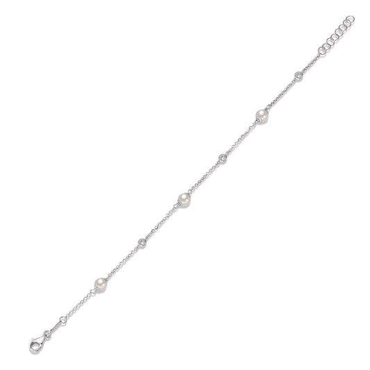 Bracelet Or blanc 18K Zircone 3 Pierres perle d'eau douce blanc, 3 Perles, 4.5 mm 16-18 cm