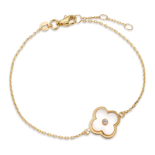 Bracelet Or jaune 9K Zircone nacre Fleur 17-19 cm