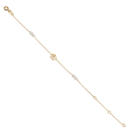 Bracelet Or jaune 14K Zircone perle d'eau douce, 4 Perles 3-3.5 mm Fleur 12-16 cm